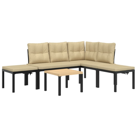 vidaXL 5 részes fekete porszórt acél kerti kanapészett párnával kerti bútor 1 kép