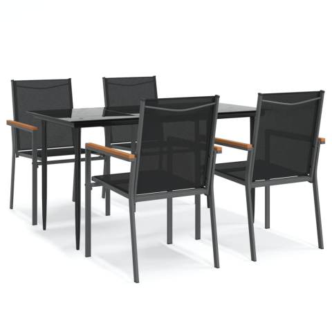 Teljes vidaXL 5-részes fekete textilén és acél kerti étkezőgarnitúra (3187035) termékleírás