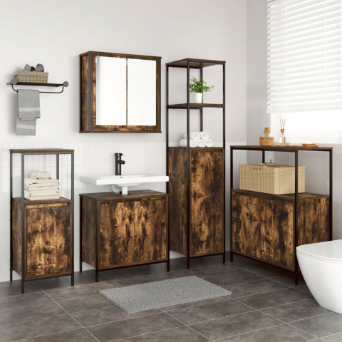 1 kép vidaXL 5 részes fürdőszoba bútor szett füstölgött tölgy mérnöki fából