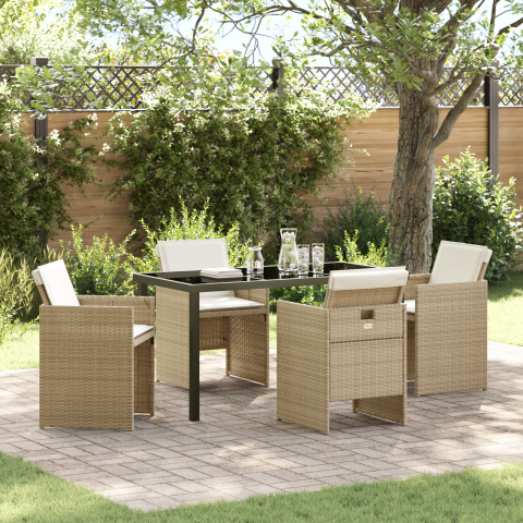 Teljes vidaXL 5 részes Kert Étkező Szett párnákkal Bézs Poli Rattan termékleírás