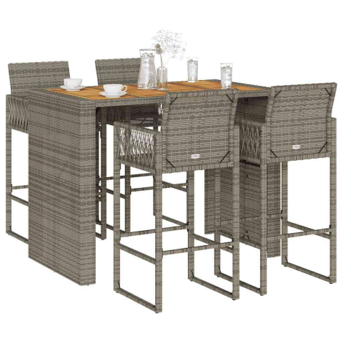 vidaXL 5 részes kerti bárkészlet párnák nélkül szürke polirattan akác kerti bútor termékleírás