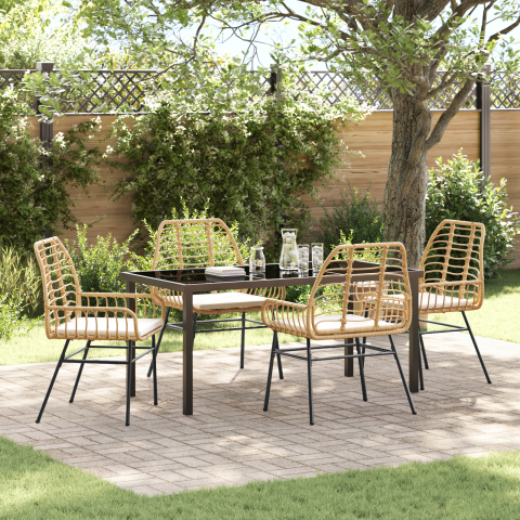 Teljes vidaXL 5 részes kerti étkező szett párnákkal Barna Polirattan termékleírás