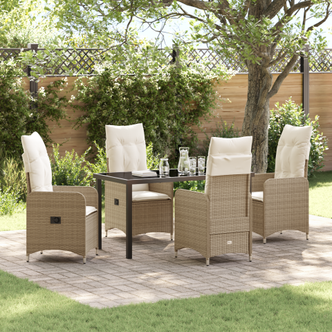 1 kép vidaXL 5 Részes Kerti Étkezőszett Párnákkal Bézs Poly Rattan