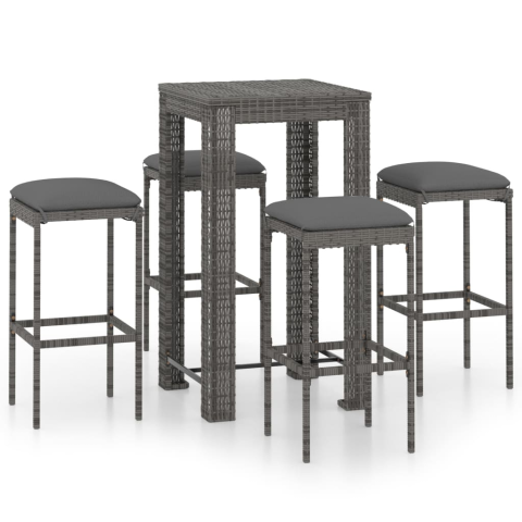Teljes vidaXL 5 részes szürke polyrattan kerti bárszett párnákkal termékleírás
