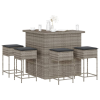 vidaXL 5 részes szürke polyrattan kerti bárszett párnákkal