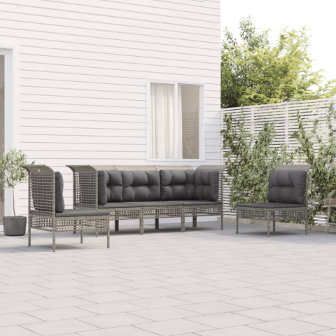 1 kép vidaXL 5 részes szürke polyrattan kerti ülőgarnitúra párnákkal