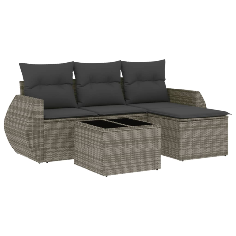 vidaXL 5 részes szürke polyrattan kerti ülőgarnitúra párnákkal (3253617)