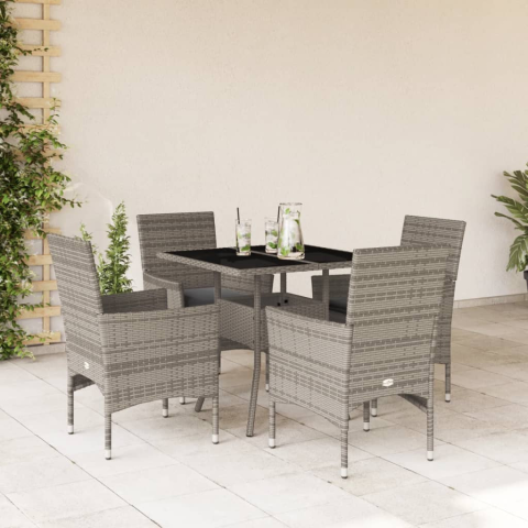 Teljes vidaXL 5 részes szürke polyrattan/üveg kerti étkezőgarnitúra párnával termékleírás