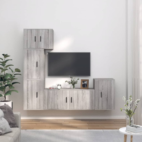 Teljes vidaXL 5 részes szürke sonoma színű szerelt fa TV-szekrényszett termékleírás