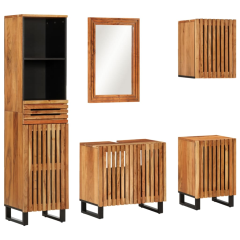 Elegáns Akácfa Fürdőszobai Bútor Szett - 5 darabos ✨ Teremtsen rendezett és stílusos környezetet fürdőszobájában ezzel a masszív akácfa bútor szettel! A természetes anyagok és a praktikus kialakítás tökéletes kombinációja. A szett tartalma: Magas sz...