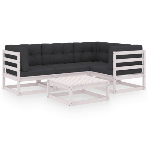 Teljes vidaXL 5 részes tömör fenyőfa kerti ülőgarnitúra párnákkal termékleírás