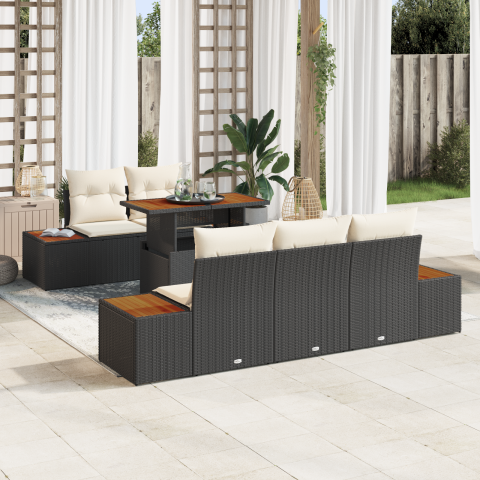 Teljes vidaXL 6 darabos kert étkező szett párnákkal, fekete poli rattan, akác termékleírás