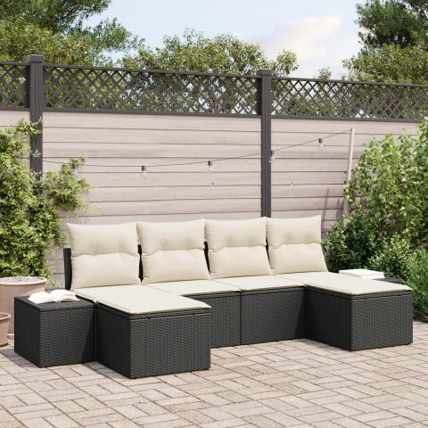 Teljes vidaXL 6 darabos Kert Kanapé Készlet Párnákkal Fekete Poli Rattan termékleírás