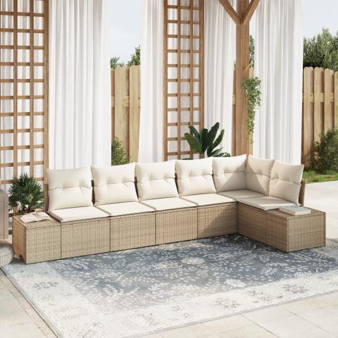 Teljes vidaXL 6 Darabos Kert Kanapé Szett Párnákkal Bézs Poli Rattan termékleírás