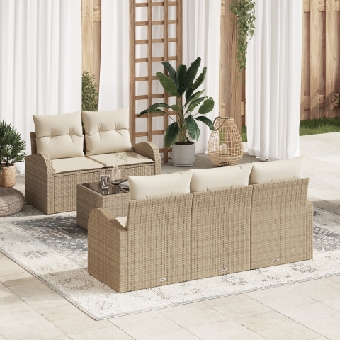 Teljes vidaXL 6 Darabos Kerti Kanapé Szett Párnákkal Bézs Poli Rattan termékleírás