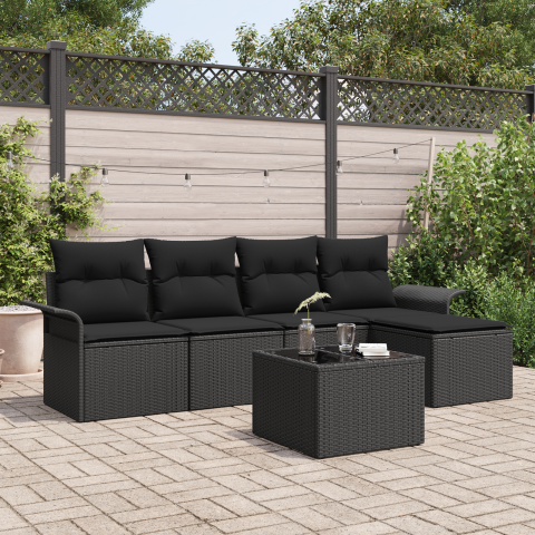 Teljes vidaXL 6 Darabos Kerti Kanapé Szett Párnákkal Fekete Poli Rattan termékleírás