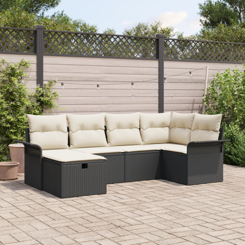Teljes vidaXL 6 darabos Kerti Kanapé Szett Párnázott Fekete Poli Rattan termékleírás