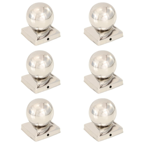 1 kép vidaXL 6 db gömb alakú rozsdamentes acél kerítésoszlop-sapka 91x91 mm