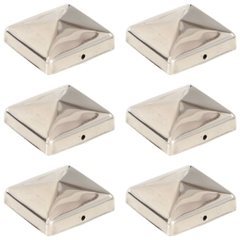 1 kép vidaXL 6 db gúla alakú rozsdamentes acél kerítésoszlop-sapka 71x71 mm