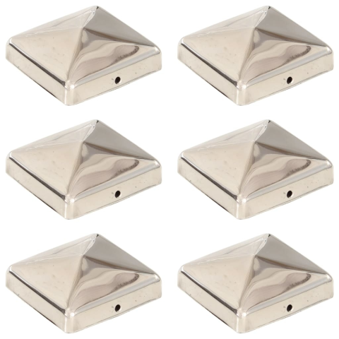 1 kép vidaXL 6 db gúla alakú rozsdamentes acél kerítésoszlop-sapka 71x71 mm