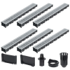 Ez a készlet 6 darab horganyzott acél ráccsal ellátott folyókát, 1 szűrőrendszert, 1 alsó kivezető csatlakozót és 2 végzáró elemet tartalmaz. Tökéletes megoldást kínál az autóbeállón, a verandán vagy egyéb kültéren felgyülemlett víz elvezetéséhez. Az elemes folyókák egyedülálló zárszerkezettel rendelkeznek, melynek köszönhetően az elemek könnyedén egymáshoz csatlakoztathatók. A folyókák kiváló minőségű műanyagból készültek, és horganyzott a