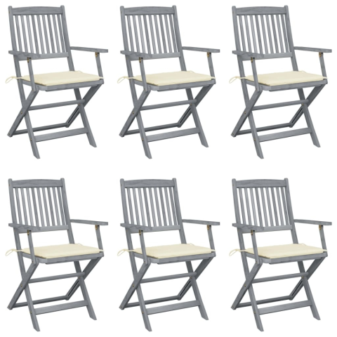 Teljes vidaXL 6 db összecsukható tömör akácfa kültéri szék párnákkal termékleírás