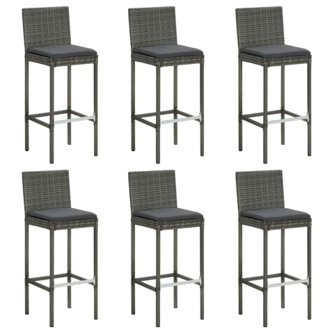 Teljes vidaXL 6 db szürke polyrattan bárszék párnákkal termékleírás