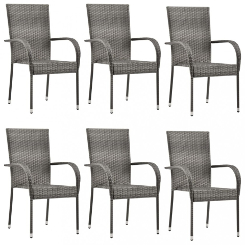 Teljes vidaXL 6 db szürke rakásolható polyrattan kültéri szék termékleírás