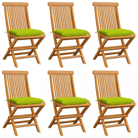 Teljes vidaXL 6 db tömör tíkfa kerti szék élénkzöld párnával termékleírás
