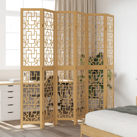 vidaXL 6 paneles barna tömör császárfa térelválasztó bútor termékleírás