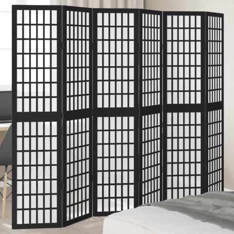 Teljes vidaXL 6 paneles fekete tömör császárfa térelválasztó termékleírás