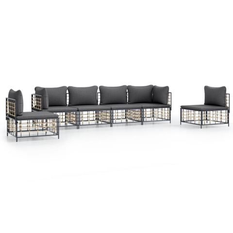 1 kép vidaXL 6-részes antracitszürke polyrattan kerti ülőgarnitúra párnákkal