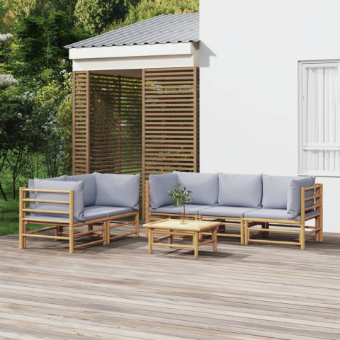 1 kép vidaXL 6 részes bambusz kerti ülőgarnitúra világosszürke párnákkal