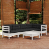 Teljes vidaXL 6 részes fehér fenyőfa kerti ülőgarnitúra párnákkal termékleírás