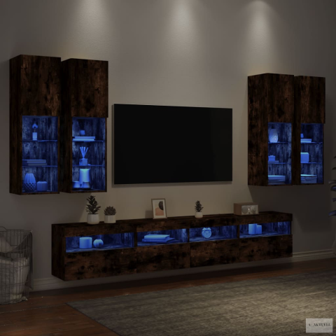 Teljes vidaXL 7 darabos füstös tölgy színű fali TV-szekrény szett LED-del termékleírás