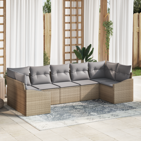 Teljes vidaXL 7 darabos kerti étkező készlet párnákkal bézs poli rattan termékleírás