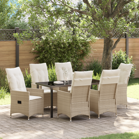 Teljes vidaXL 7 Darabos Kerti Étkező Szett Párnákkal, Bézs Poli Rattan termékleírás