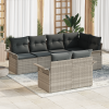 Teljes vidaXL 7 darabos kertiszófakészlet párnákkal, világosszürke polirattan termékleírás