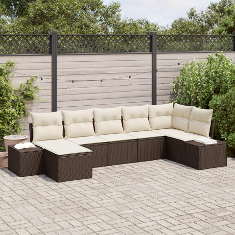 Teljes vidaXL 7 db-os Kertibútor szett párnákkal Barna Polirattan termékleírás