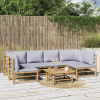 1 kép vidaXL 7 részes bambusz kerti ülőgarnitúra világosszürke párnákkal