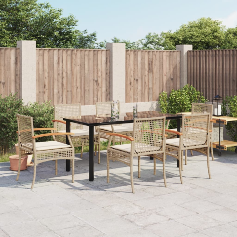1 kép vidaXL 7 részes bézs polyrattan kerti étkezőgarnitúra párnákkal