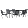 1 kép vidaXL 7 részes fekete acél és textilén kerti étkezőgarnitúra