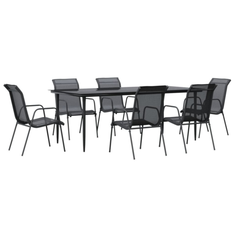 Teljes vidaXL 7 részes fekete acél és textilén kerti étkezőgarnitúra termékleírás