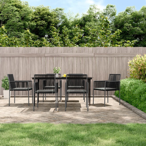 Teljes vidaXL 7-részes fekete polyrattan és acél kerti étkezőszett párnával termékleírás