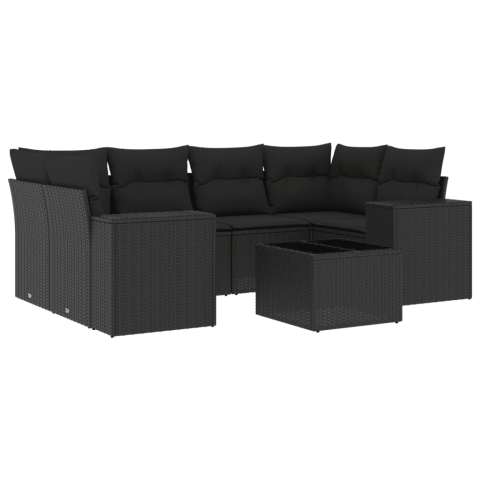 vidaXL 7 részes fekete polyrattan kerti ülőgarnitúra párnával (3222314) kerti bútor 1 kép