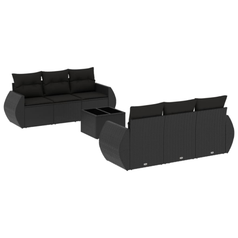 vidaXL 7 részes fekete polyrattan kerti ülőgarnitúra párnával (3253442)