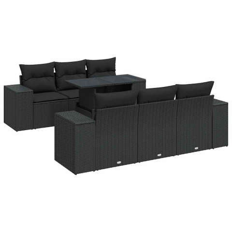 Teljes vidaXL 7 részes fekete polyrattan kerti ülőgarnitúra párnával (3326736) termékleírás
