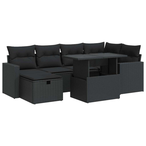 Teljes vidaXL 7 részes fekete polyrattan kerti ülőgarnitúra párnával (3327815) termékleírás