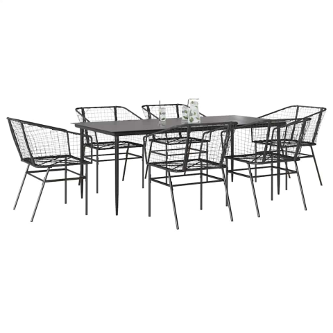 Teljes vidaXL 7 részes fekete polyrattan üveg kerti étkezőgarnitúra termékleírás