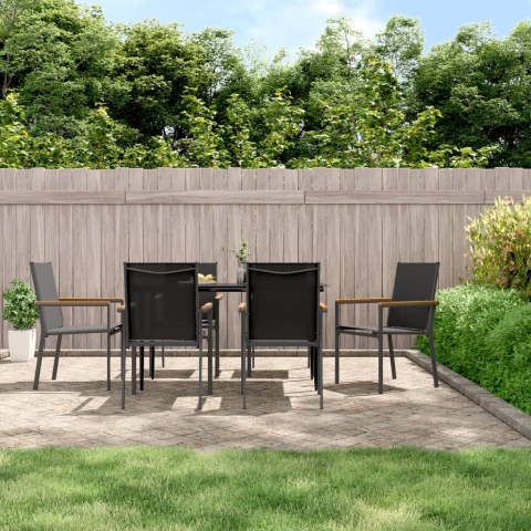1 kép vidaXL 7-részes fekete textilén és acél kerti pihenőgarnitúra